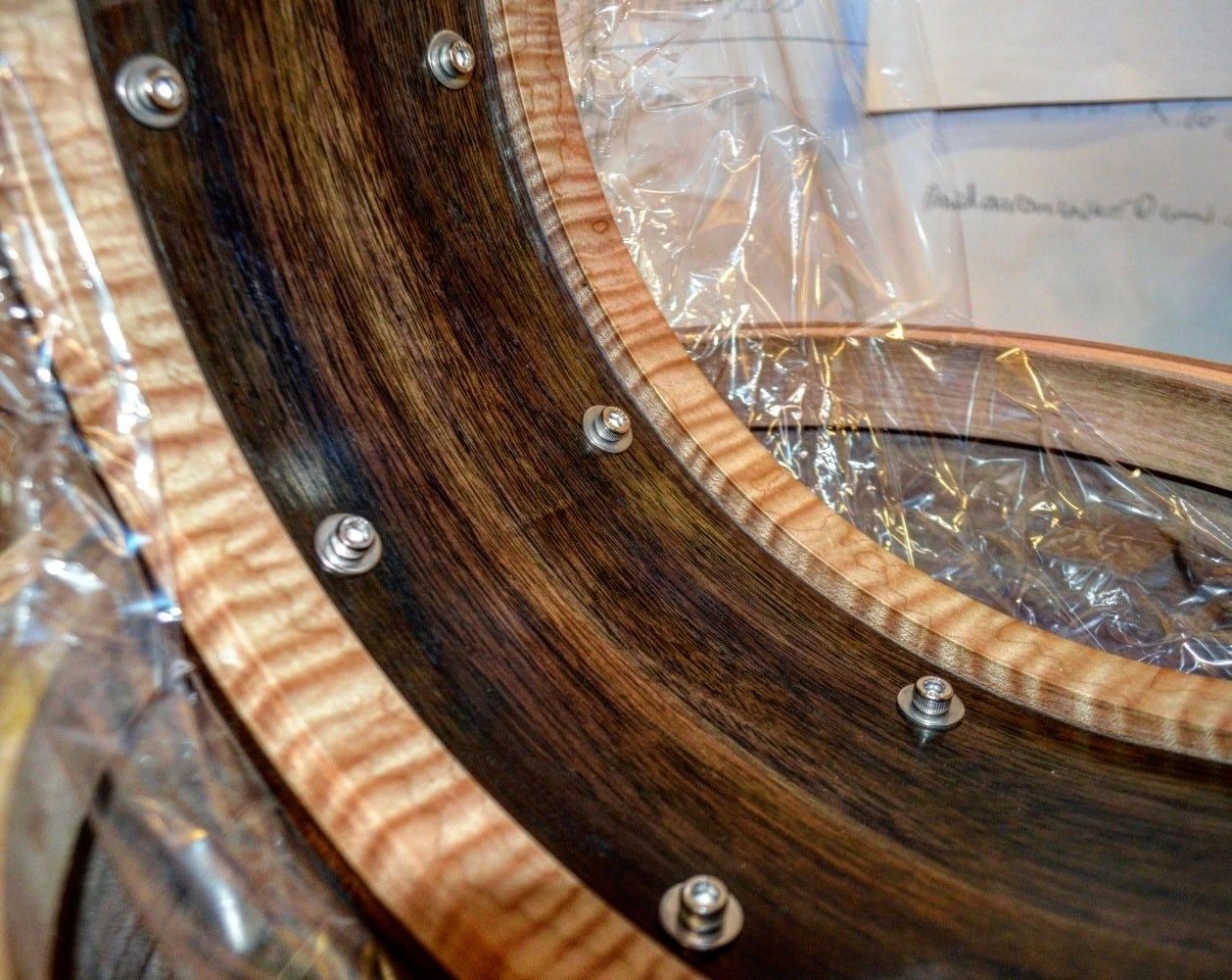 After the finish is properly polished we mount the best components available on your Cask drum, paying close attention to ensure there is no tension rod splay or misalignment, allowing the end user to properly tension the drum.